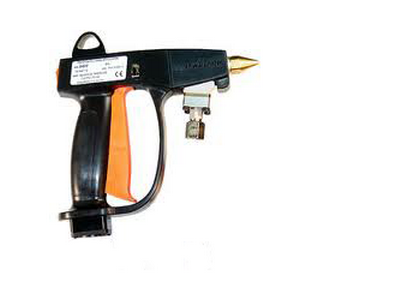 Hot melt service can supply this type of Dynatec hand gun in the adhesive striping version or as a spray gun. Different nozzle diameters are also available. If spray is chosen, the spray width can also be changed by replacing the air cone.